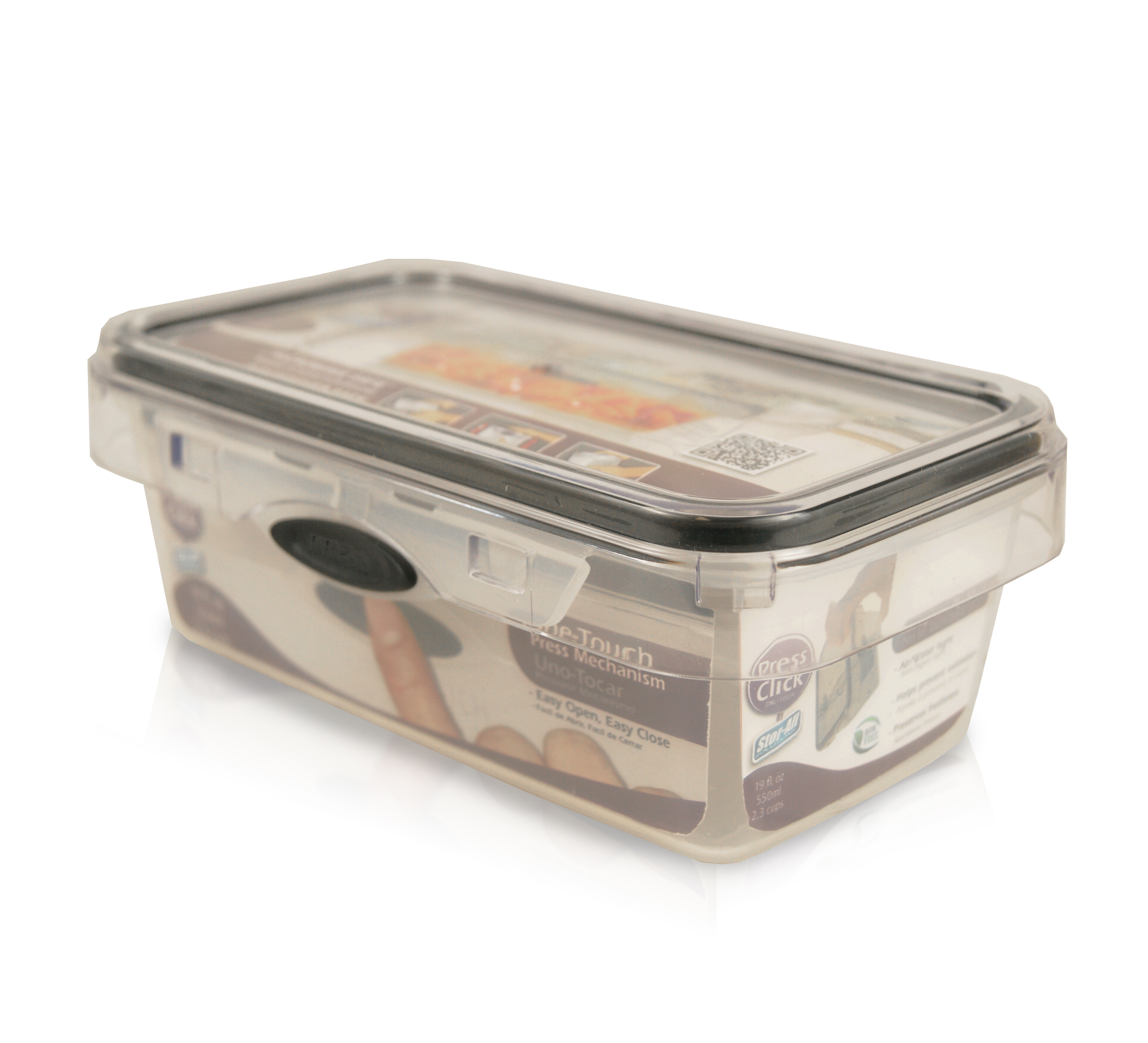 Press N' Click's patented, easy to use "One Touch" Press mechanism makes food storage a breeze! This container is both Air & Water Tight, keeping your food fresher longer without any unnecessary mess. All Press N' Click storage products are washable, feature Heat Resistant Handles to make carrying hot meals worry-free and are made from BPA Free virgin plastic. They are Microwave, Dishwasher & Freezer Safe and stack or nest easily on your counter or in your cupboard.